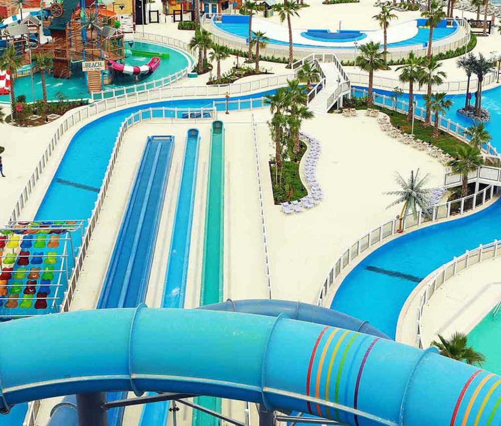 Aquaventure waterpark is part of the extravagant Atlantis the palm resort. Try the leap of faith, an almost vertical slide dropping from the top of tower of Neptune into the shark lagoon below. Slasher’s is for the younger crowd and there is a 700 meter private beach and 1.6 kilometers of interconnecting, meandering waterways.